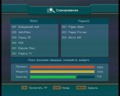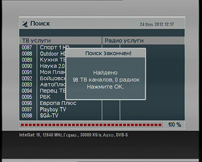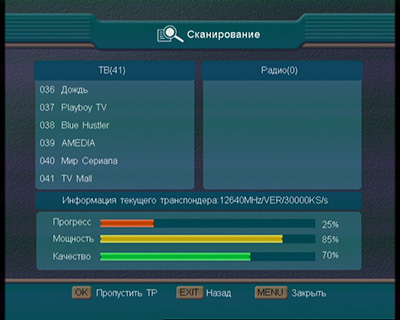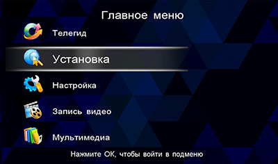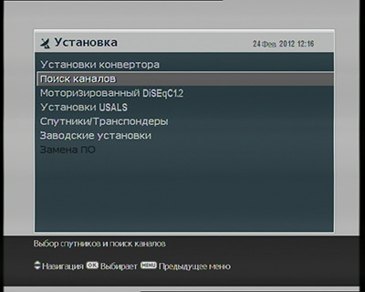 Инструкции: 1.Пункт «Главное меню» на «ТВ Центр», 2.«Информация». 3.«Обновление ОТА». Приемник сам найдет каналы и сделает их обновление.